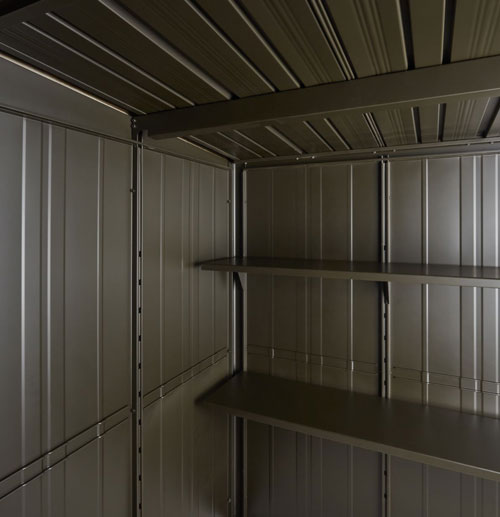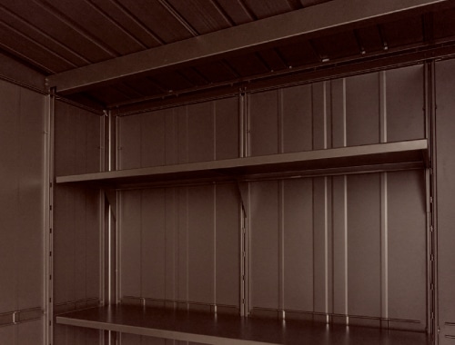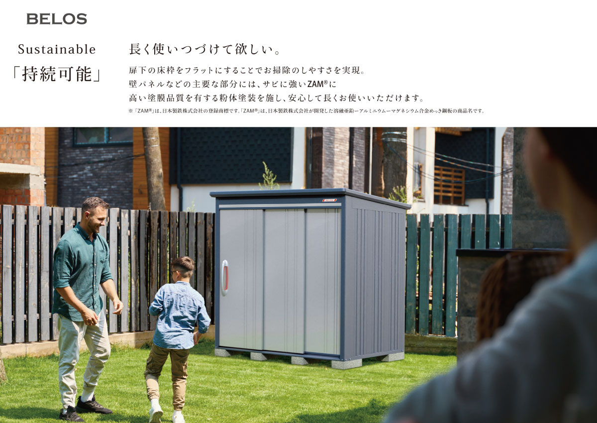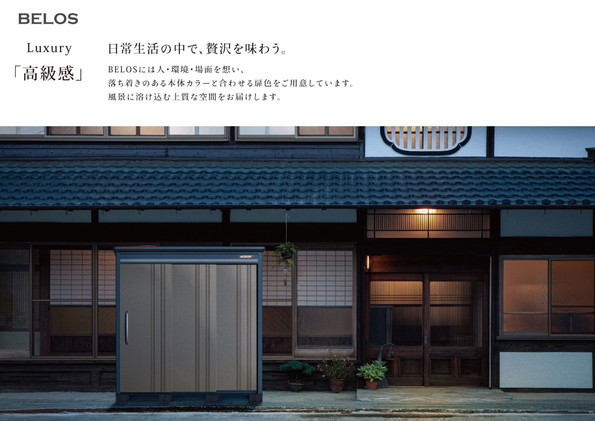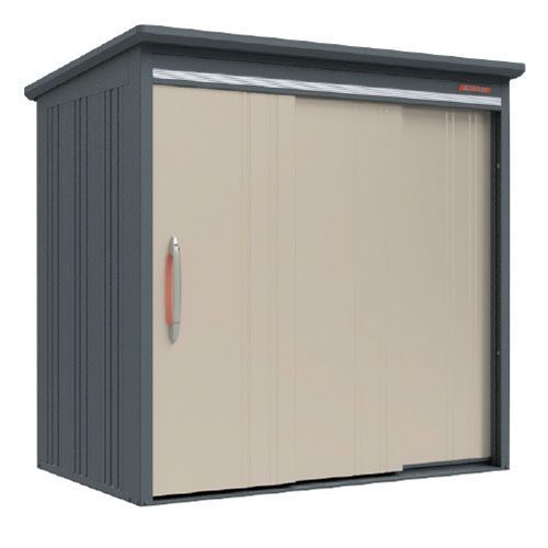 お買い得なオリジナルモデル物置。扉は2色(セピアグレーとカカオブラウン)から選べます。丈夫な柱構造を採用。扉は連動吊り戸方式。たて樋標準装備。