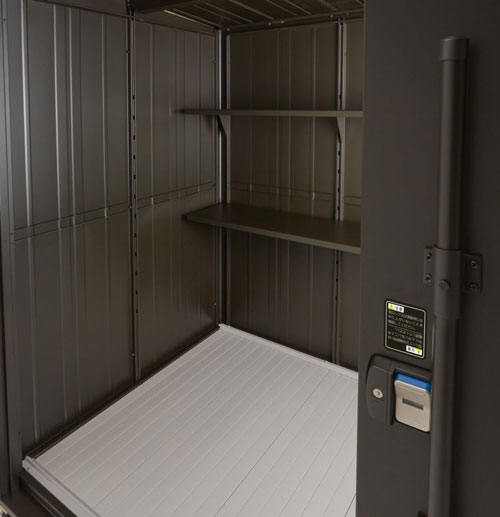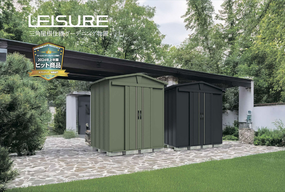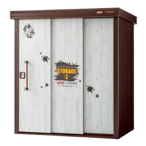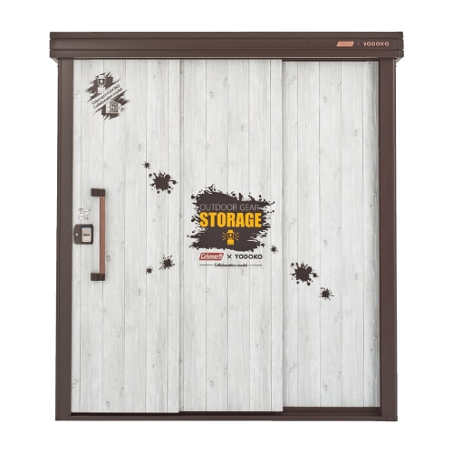 コールマンカラーの深みのあるグリーンにレッドの銘板がアクセント。コンパクトに見えて、存在感も収納力もばっちり。ヨドコウから新しい“収納”の提案です。