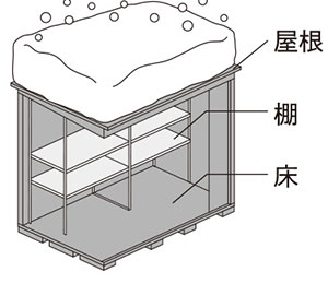 <棚耐荷重>2000N/㎡(約200kgf/㎡) <床耐荷重>9000N/㎡(約900kgf/㎡) |