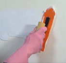ビニール壁紙の上から塗れる室内用塗料。低臭タイプで塗膜は丈夫で汚れにくく、室内のビニール壁紙・コンクリート・モルタル面などに塗れる。