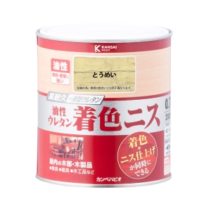 木目を生かした着色とニス仕上げが同時に出来る!光沢に優れた油性タイプ。摩耗や衝撃に強く、耐久性に優れた塗膜を形成し、木部を長期間保護します。