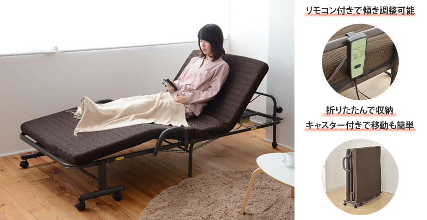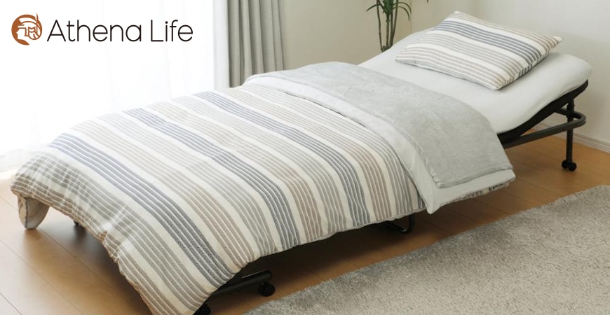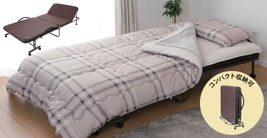 折り畳みベッドは必要に応じておりたたんで収納ができるので、限られたお部屋のスペースを有効活用できます。またキャスター付きなので、移動も簡単にできます。