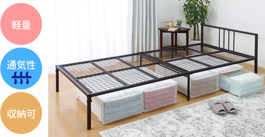 通気性の良いすのこ床板が湿気を逃して蒸れにくい。