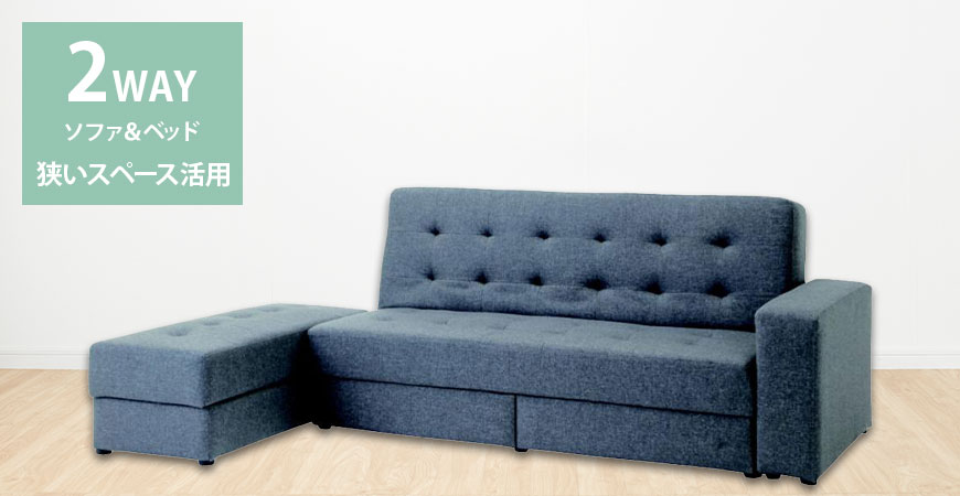 ソファーベッドはソファとして、ベッドとして、そのときどきの用途に合わせてお使いいただけます。ソファーベッドはひとつで両方の機能を備えているためスペースの有効活用が期待できます。