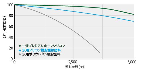 汎用塗料に比べ優れた耐候性を示します。