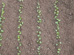 プランターでは条間10cm程度で2列スジまきを行います。