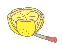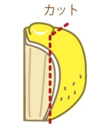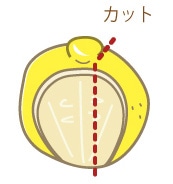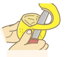 りんごのように皮を剥き、白いワタを厚めに残します。
