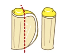 ヘタの部分を切った後、ヘタ側を下にしてリングに沿って切っていきます。
