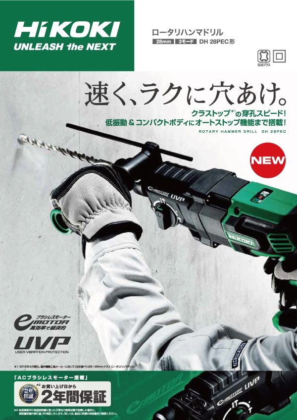 最大穴あけ能力:コンクリート28mm 鉄工13mm 木工32mm(鉄工、木工は別売チャックアダプタ必要) 標準付属品:ケース、サイドハンドル、デプスゲージ