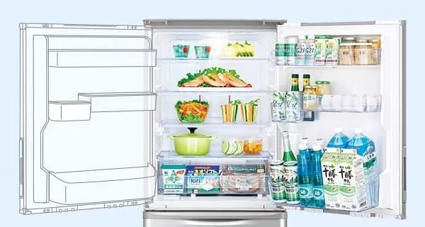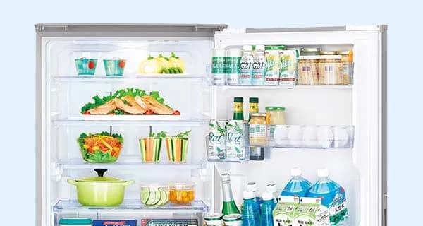・どっちもドア シャープ独自のどっちもドア。ひとつのドアが右にも左にも開く、左右近い方からサッと食品を出し入れできて便利です。 ・出し入れラクラクライン 女性の身長に合わせたローウエスト設計で、重いペットボトルもラクに出し入れ。 ・ナノ低温脱臭触媒 触媒にナノサイズの粒子を採用。 脱臭+抗菌のダブル効果で気になるニオイ・雑菌・カビを抑えます。