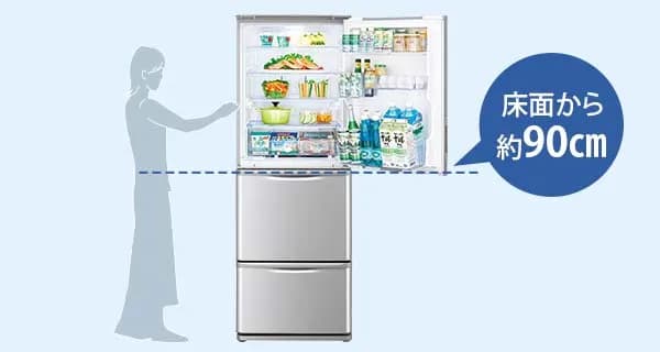 女性の身長に合わせたローウエスト設計で、重いペットボトルもラクに出し入れ。