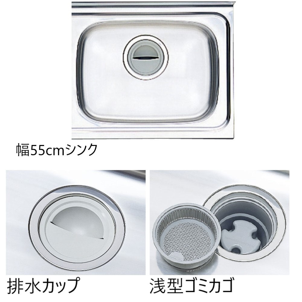 ●仕様:流し台(1段引出)●シンク:幅55cm●シンク位置:左●扉色:アイボリー●扉材:特殊ウレタン化粧パーティクルボード●上板(トップ):ステンレス