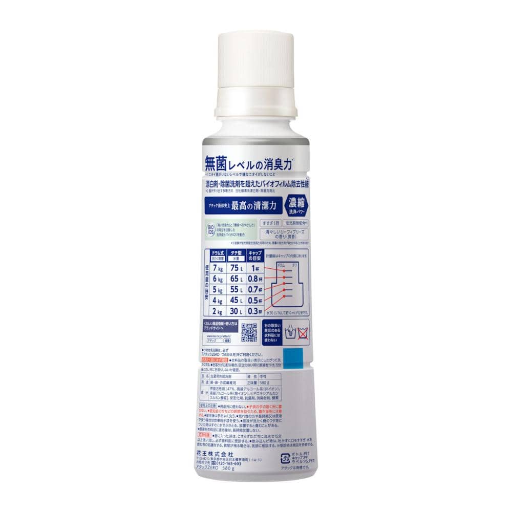 アタック液体史上 最高の清潔力。 無菌レベルの消臭力※1 濃縮洗浄パワー。 漂白剤・除菌洗剤を超えたバイオフィルム除去を達成※2。 ※1ニオイ菌がいないレベルで嫌なニオイがしないこと ※2菌が作り出す多糖汚れ 花王社酵素系漂白剤・除菌洗剤比