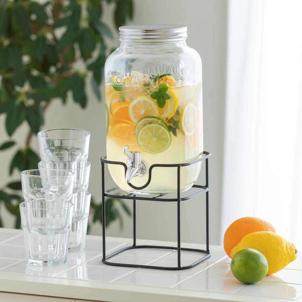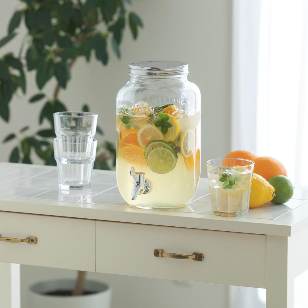 ■蛇口レバーで簡単に注げるガラス製ドリンクサーバー。ご家族にもピッタリの容量3.5L!