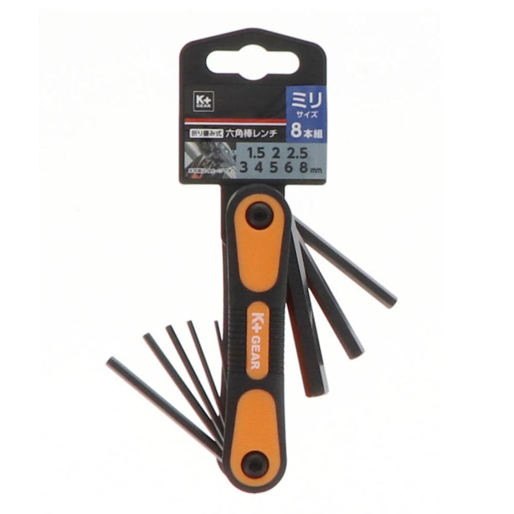 K+GEAR 折り畳み式六角棒レンチ 8本組 ミリサイズ