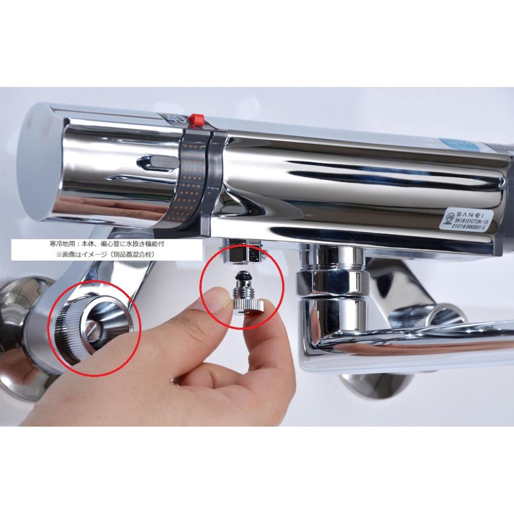 サーモカートリッジの働きで湯水の混合量を自動で調整し、常に一定の温度を保つことが出来ます。