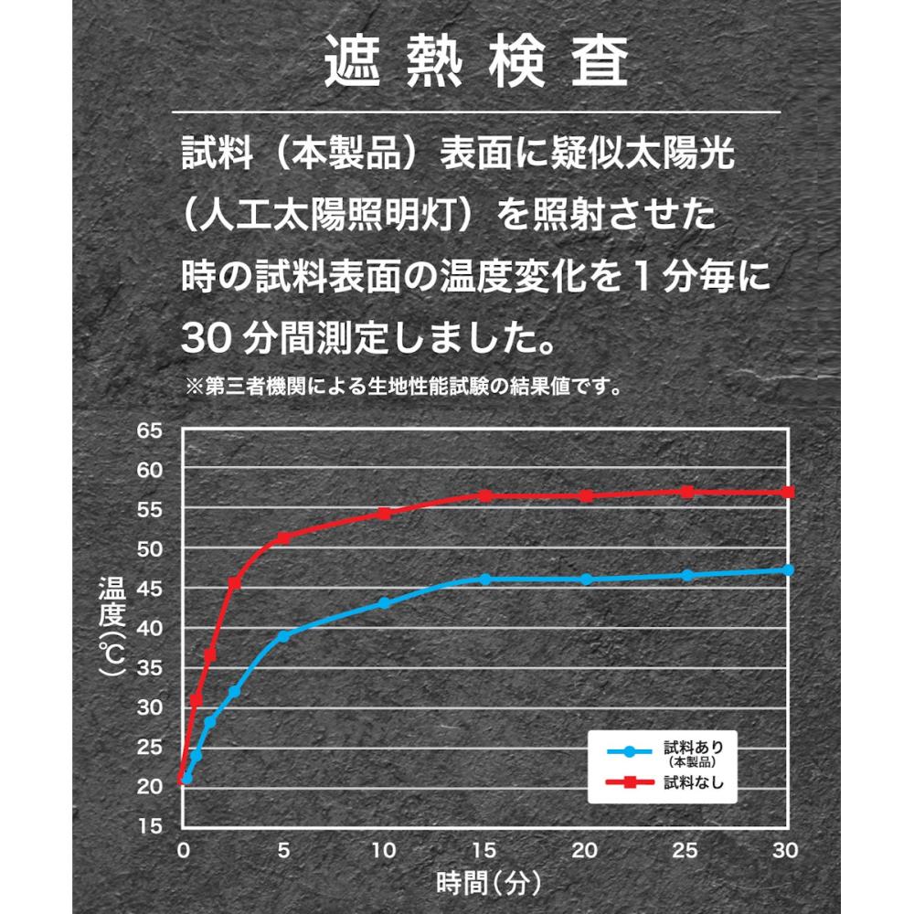 試料(本製品)表面に疑似太陽光(人工太陽照明灯)を照射させた時の 試料表面の温度変化を1分毎に30分間測定しました。