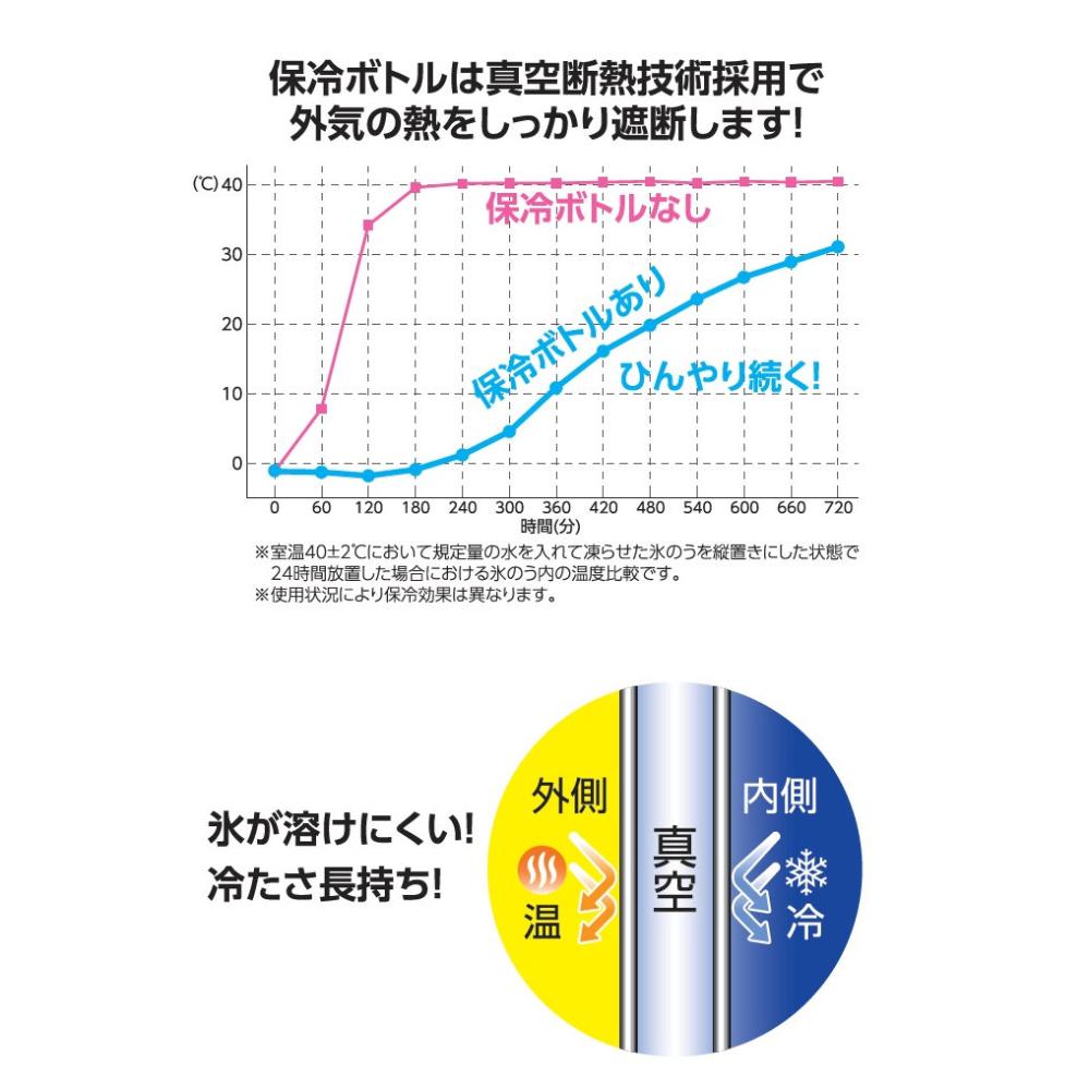 真空保冷ボトルで冷たさ長持ち。ストラップ付き。保冷専用。