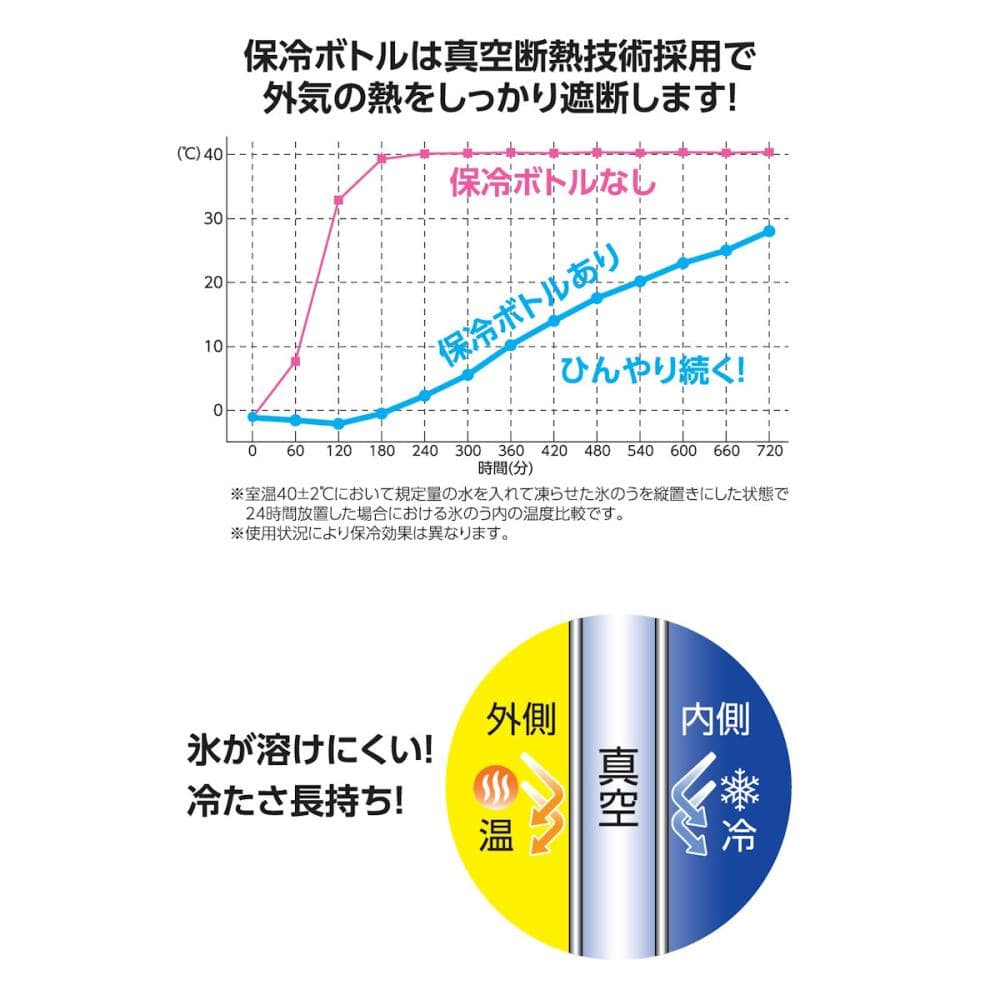 真空保冷ボトルで冷たさ長持ち。ストラップ付き。保冷専用。