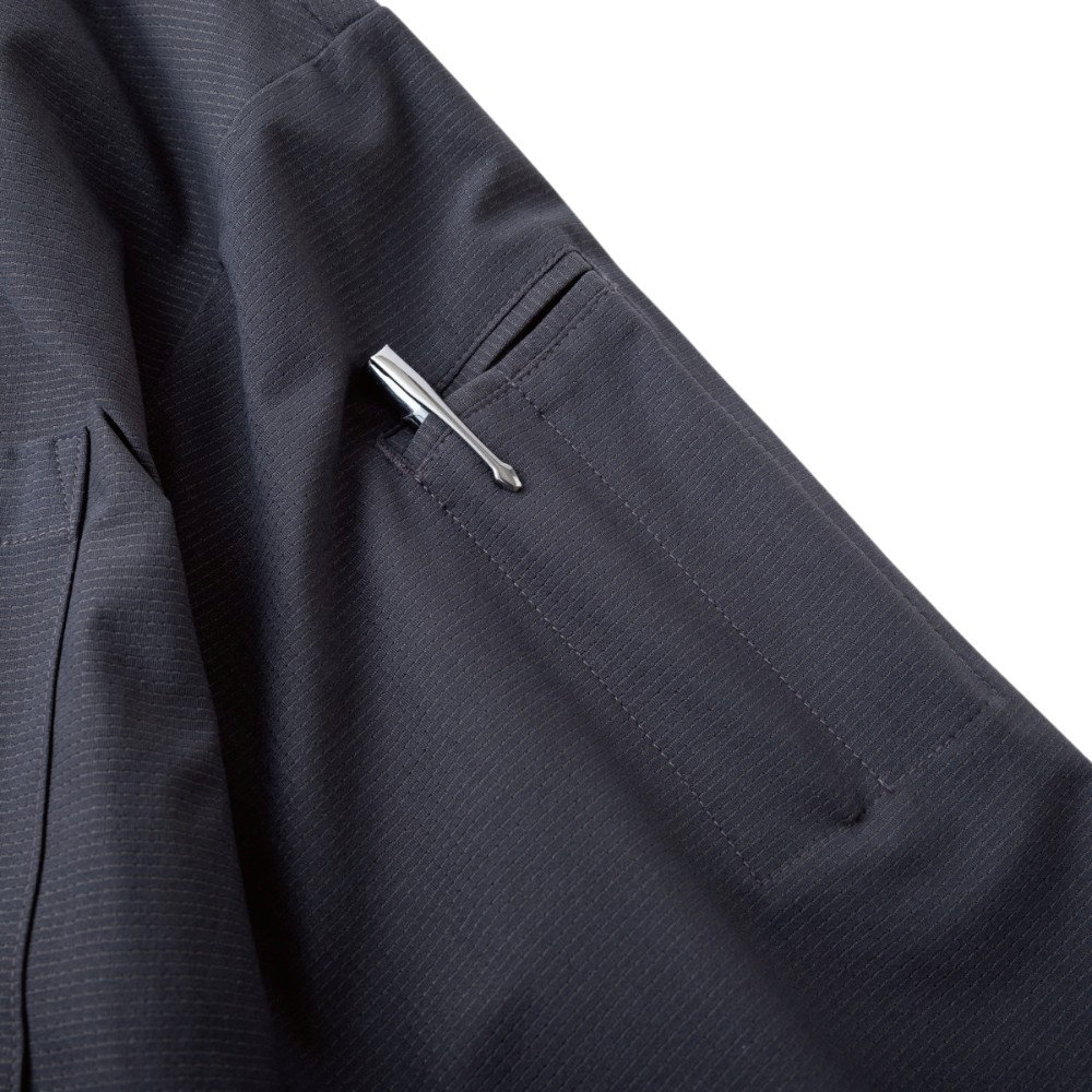 ●左袖ペン差し、両脇スリット、左胸ポケット
