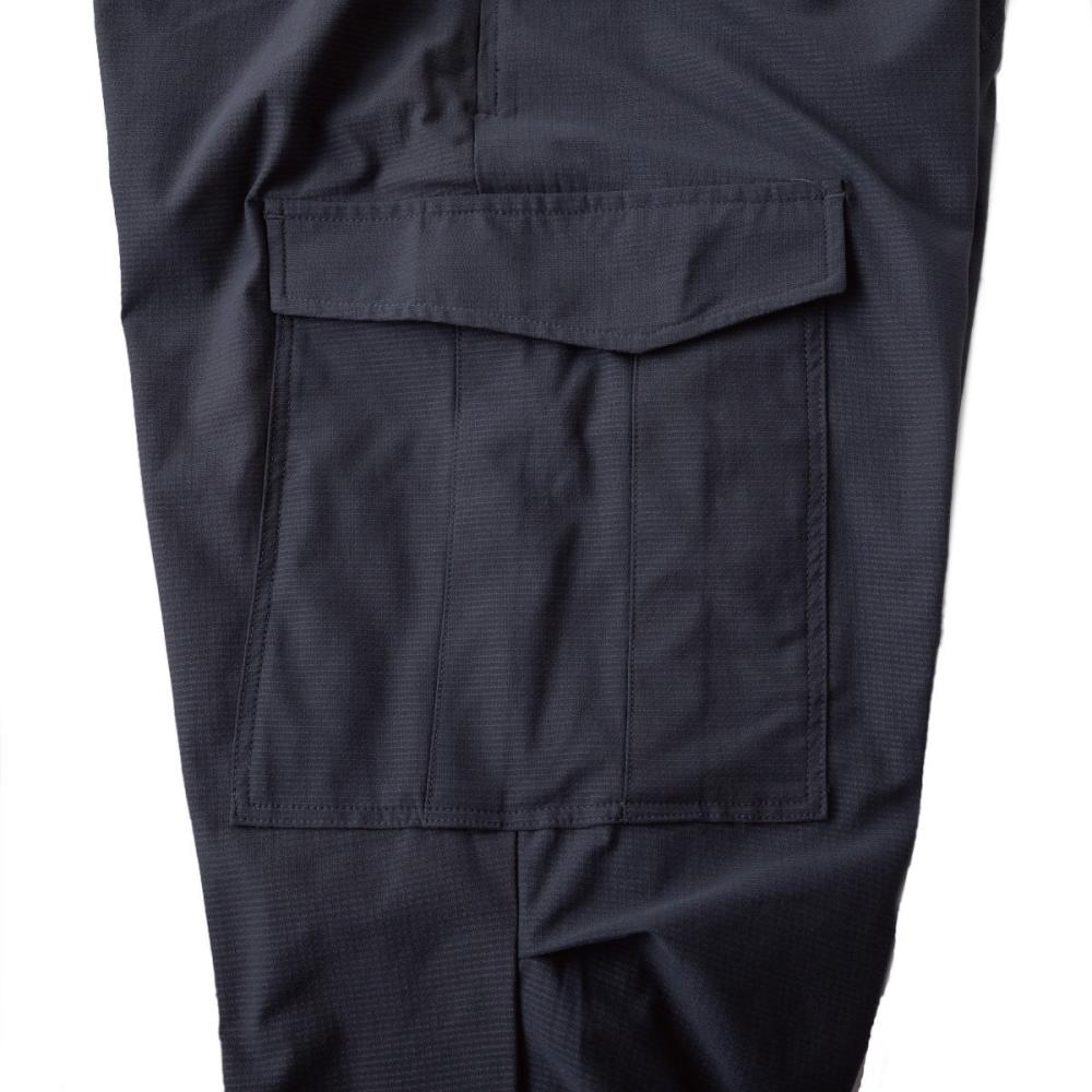 ●右前Dカン付き、右後ろ玉緑ポケット、調整可能なウエスト紐、右脇ファスナーポケット、膝ダーツ、裾ゴム仕様、両脇マジックテープ付きフラップポケット