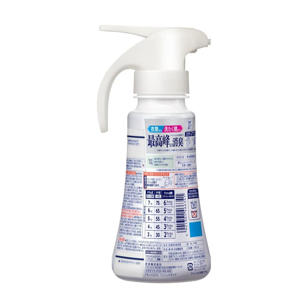 原材料・成分:界面活性剤[44%、高級アルコール系(非イオン)、高級アルコール系(陰イオン)、ヒドロキシアルカンスルホン酸塩]、安定化剤、抗菌剤、消臭助剤、酵素