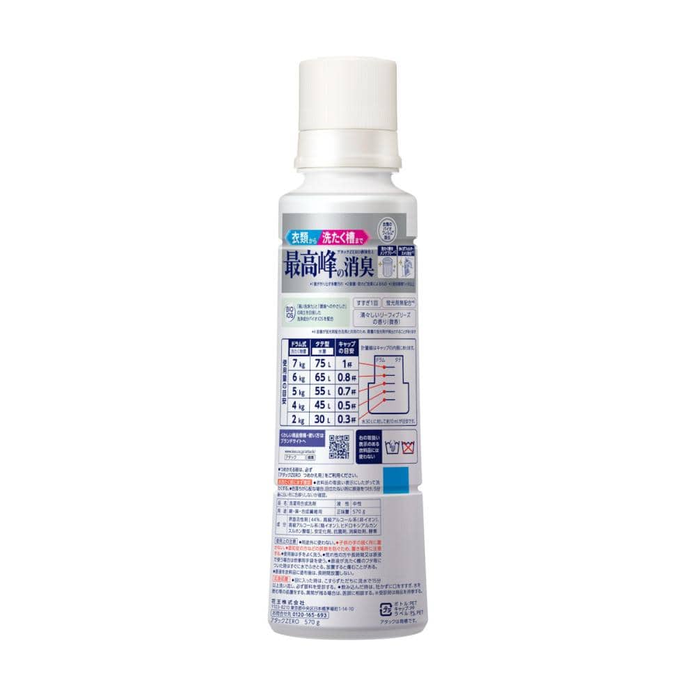 原材料・成分:界面活性剤[44%、高級アルコール系(非イオン)、高級アルコール系(陰イオン)、ヒドロキシアルカンスルホン酸塩]、安定化剤、抗菌剤、消臭助剤、酵素