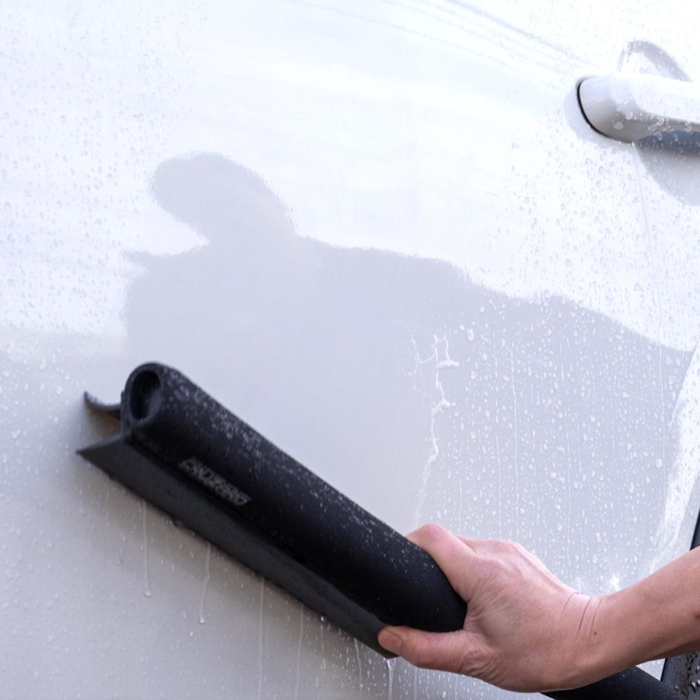 ●車のボディやガラスにブレード部を軽く当て、なでるように水をはらってください。