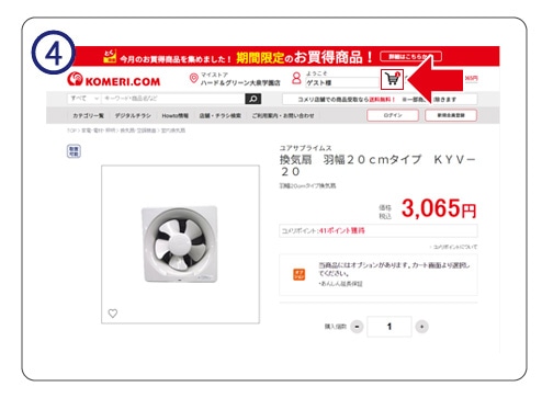 取り置き店舗に購入個数を入力し「カートに入れる」ボタンを押してください。
