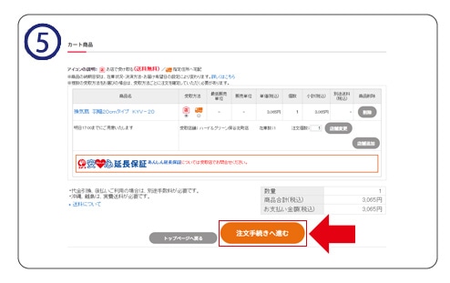 内容を確認し、問題が無ければ「注文手続きへ進む」ボタンを押してください。
